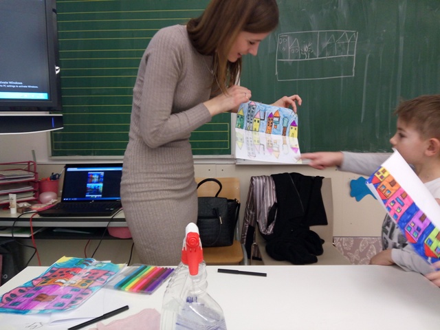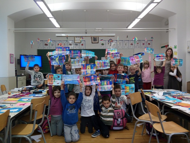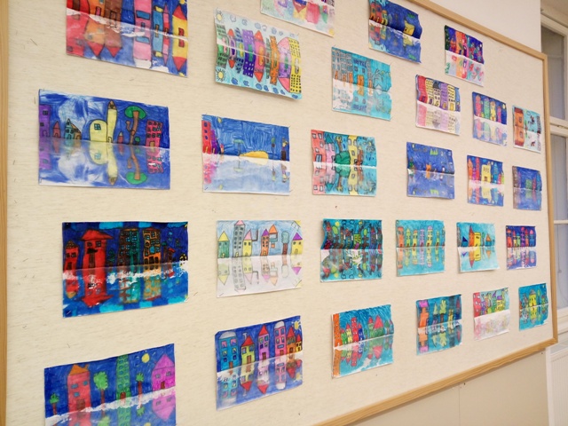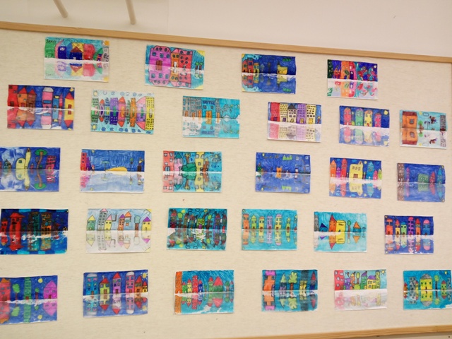 Prvaši boravkaši pod vodstvom učiteljice Barbare Tus-Sedlar isprobali su novu likovnu tehniku i radili odsjaj grada.