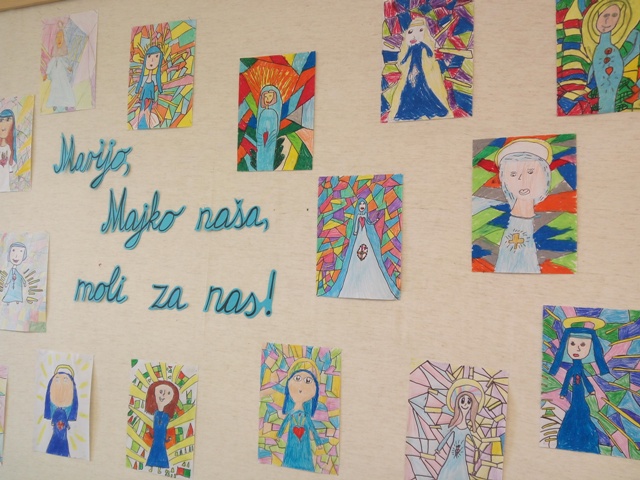 Svibanj je, mjesec naše nebeske Majke Marije. Učenici produženoga boravka prvoga razreda, sa svojom učiteljicom Barbarom Tus-Sedlar, uz upoznavanje krunice te različitih stvari o Mariji, odlučili su i u svom likovnom stvaralaštvu uzeti Mariju za motiv. Kako im je uspjelo, pogledajte!