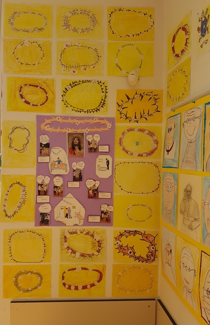 U čast i slavu Onoga koji je za nas trnjem okrunjen bio. U čast i slavu Onoga koji je za nas raspet bio. Njemu u čast učenici prvog razreda produženog boravka, zajedno sa svojom učiteljicom Marinom Dimovski, slikali su simbole vezane uz Isusovu muku koju je podnio radi svih nas, nama na spasenje.