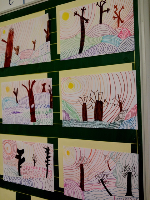 Učenici produženoga boravka, s učiteljicom Barbarom Tus-Sedlar, već su mnogo naučili o crtama, no odlučili su to svoje znanje još povećati, a potom uz pomoć crta napraviti likovne radove. Likovi radovi prikazuju još uvijek gola, zimska stabla, na koja dopire divna, proljetna sunčeva svjetlost, kojoj se i sami neopisivo raduju.