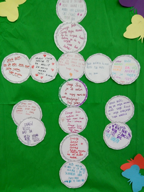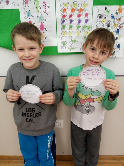 Osim priprema za priredbu i darova za majke, učenici produženoga boravka prvoga razreda sa svojom učiteljicom Barbarom Tus-Sedlar, vole da i njihova učionica bude prigodno uređena. Stoga su se "bacili" na crtanje svojih majki kako bi crteži uljepšali njihovu učionicu. Nakon crteža, mnogo razgovora, prigodnih igara i crtića o majkama, odlučili su se obratiti Bogu te mu izreći svoje molitve za majke.