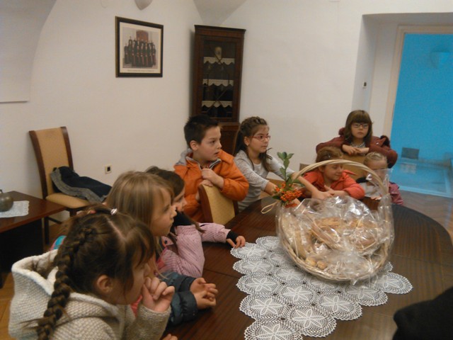 Učenici boravkaši prvog razreda posjetili su župni ured i Biskupiju s vjetoučiteljicom Jasnom i učiteljicom Marinom te biskupa i svećenike prigodno darivali kruhom.