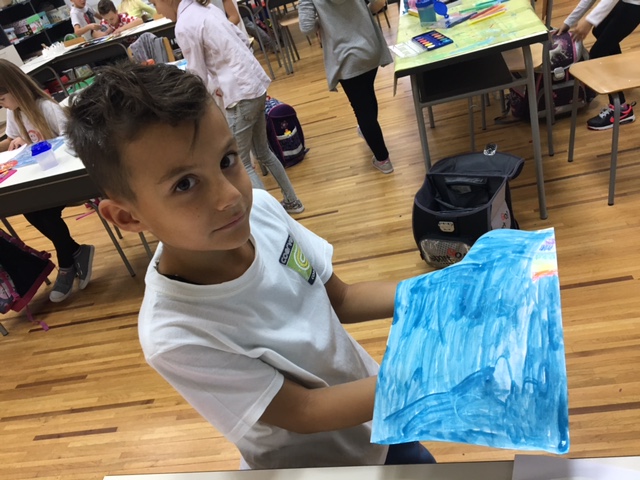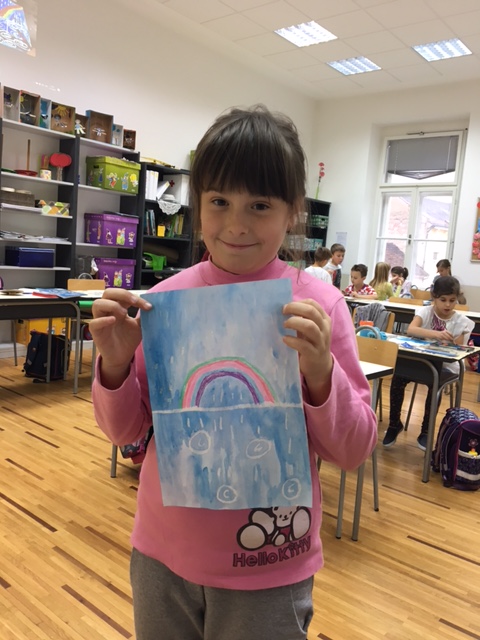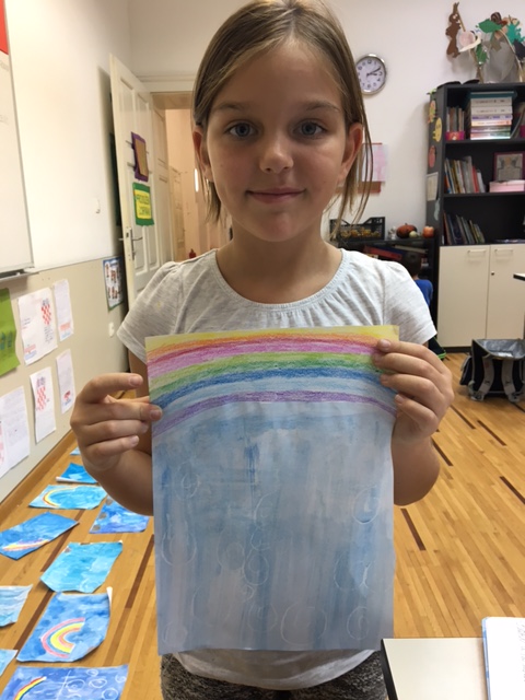 Kiša je zadnjih dana neumorno padala. Kako upravo zbog nje ne mogu na svoje najdraže igralište, učenici produženoga boravka drugoga i trećega razreda, sa svojom učiteljicom Barbarom Drežnjak, odlučili su ju iskoristiti za svoje likovne radove. Uz pomoć pastela i vodenih boja na papiru su promatrali čarolije te dobili prave kišne radove.