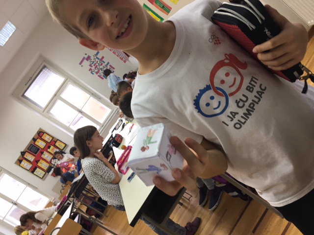 Učenici produženoga boravka tjedan su započeli igrom. Sa svojom učiteljicom Barbarom Drežnjak danas su naučili izraditi kocku, ali i ponovili svoje znanje o istoj. Nakon toga zadatak je bio sa svake strane navesti različitu aktivnost/zadatak te ga prikazati crtežom. Potom nije ostalo ništa drugo, nego sa svojim prijateljem veselo krenuti s igrom.