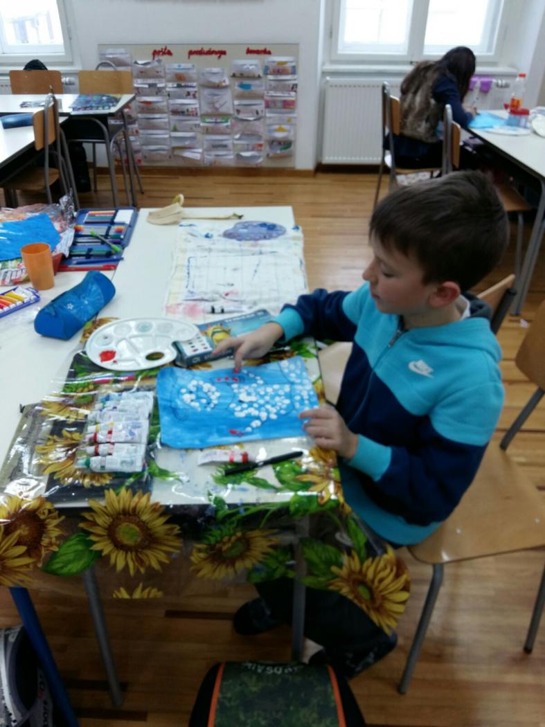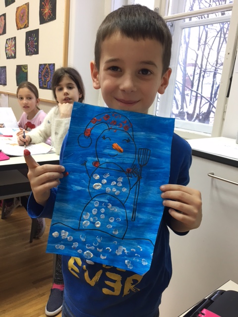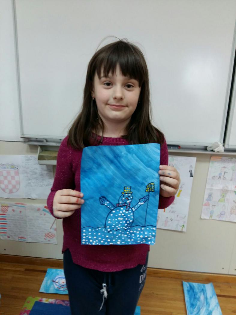 Kako se bližio 18. dan mjeseca siječnja učenici produženoga boravka drugoga i trećega razreda, s učiteljicom Barbarom Drežnjak, intenzivnije su se bavili temom snjegovića. Zašto? Upravo taj datum izgledom podsjeća na snjegovića s metlom i obilježava se kao Svjetski dan snjegovića. Učenici su snjegovića uzeli kao motiv likovnoga rada, prikazali kao istopljenoga te kao točkastoga. Zamišljali su kakav bi bio njihov dan da ga mogu provesti kao snjegovići; kako bi izgledali, tko bi ih izgradio, gdje, koliko bi trajali, što bi se s njima na kraju dogodilo i slično. Osim niza javnih nastupa, stvaralačkih pisanja te likovnih radova učenici su se toplo obukli te uputili van na snijeg. Cilj im je bio napraviti pravoga snjegovića no nije im jako išlo za rukom pa je to ispao jedan mali, široki snjegović kojim nam oni svima žele sretan Svjetski dan snjegovića.
