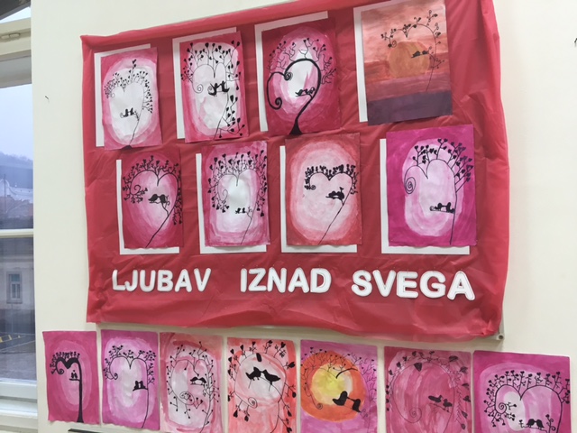 Ljubav, ljubav, ljubav iznad svega. Ovih dana u produženome boravku drugoga i trećega razreda česta je bila riječ ljubav. Spominjali su je u svojim domaćim zadaća, igrama, molitvama i likovnom stvaralaštvu. Izrađivali su straničare, oznake za olovke, čestitke za roditelje, poštanski sandučić za poštu produženoga boravka te niz likovnih radova. Sve to jer se bližio dan kada se sjećamo svetoga Valentina, zaštitnika zaljubljenih. Učenici produženoga boravka, sa svojom učiteljicom Barbarom Drežnjak, ponosni su na sve napravljeno.