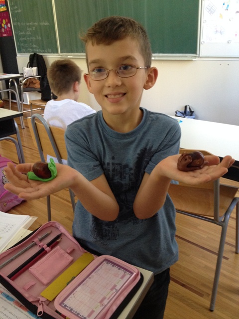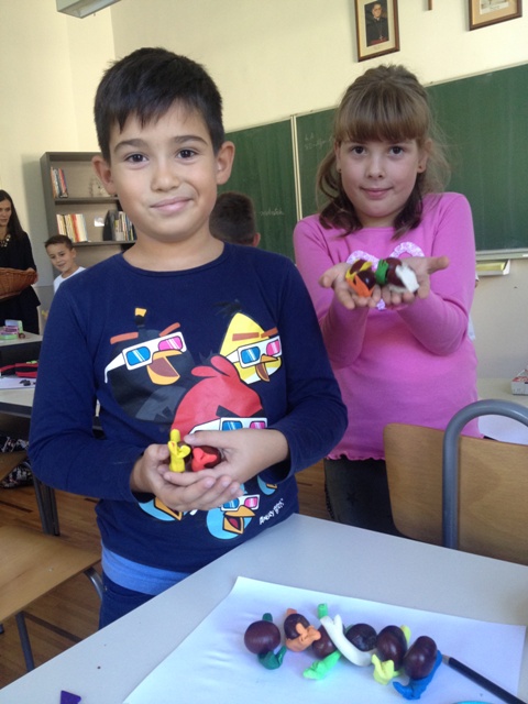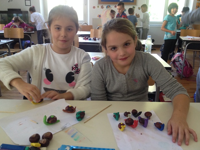 Nakon što su pozdravili jesen, učiteljica Barbara i učenici skupili su mnogo kestena pa su se odlučili u učionici poigrati s njima. Pretvorili su ih u puževe.