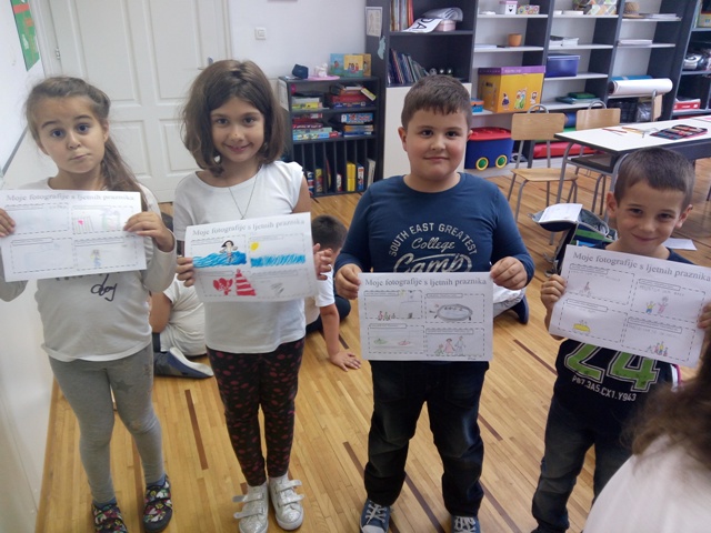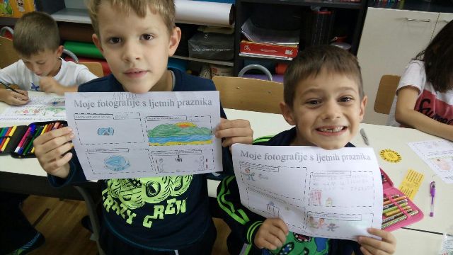 Boravkaši prvašići- postali drugašići! Veseli i nasmijani učenici produženoga boravka vratili su se u svoje klupe, nakon uživanja u prigodnim poklončićima koji su ih na klupi dočekali, sa svojom učiteljicom Barbarom Tus-Sedlar, izrađivali su fotografije svojih ljetnih praznika. Neka im je cijela školska godina što je pred njima, vesela i razigrana kao prvi dan!