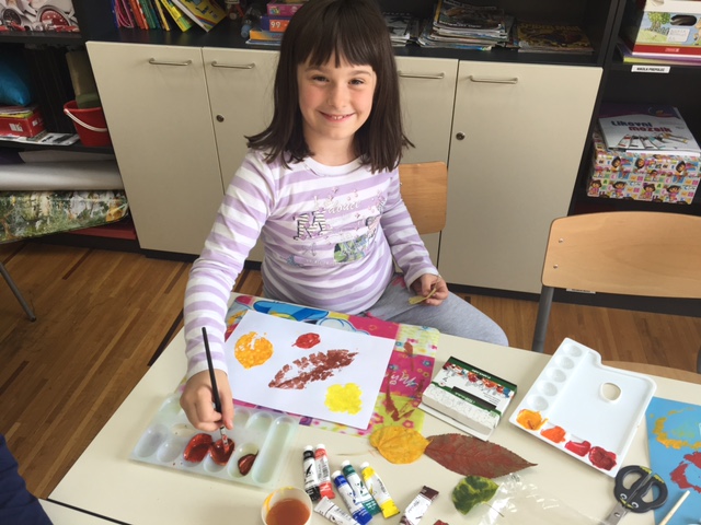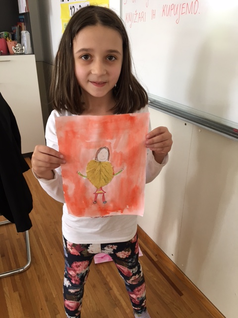 Lišće ne prestaje biti motiv likovnih radova učenika produženoga boravka drugoga i trećega razreda, sa učiteljicom Barbarom Tus-Sedlar. Koliko vole igru u suhome lišću, toliko ga vole i pokupiti te iskoristiti za svoje likovne radove. Ovih su dana upravo list koristili kako bi izradili otisak, ali i različite likove iz njihove mašte.
