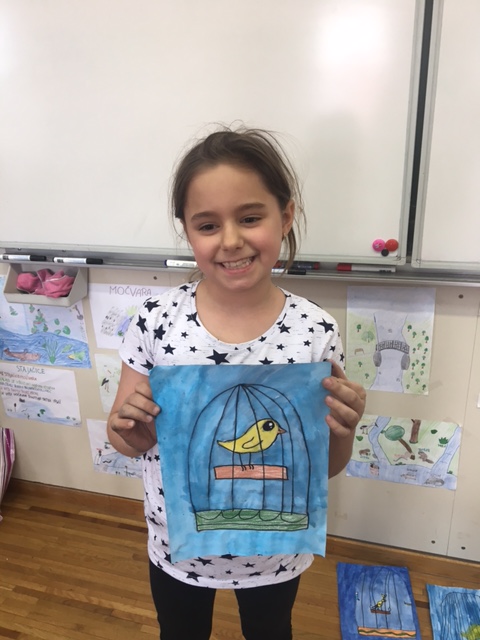 Jedan od najljepših zvukova proljeća je svakako onaj cvrkuta ptica. Upravo ptice uzeli su kao motiv svoga likovnoga rada učenici produženoga boravka drugoga i trećega razreda sa svojom učiteljicom Barbarom Drežnjak.
