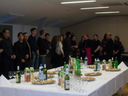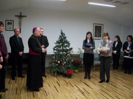Zaključio je da nema težega ali niti dragocjenijega od služenja čovjeku. Čestitao je nazočnima Božić sa željom da do njihova srca dopre Božje svjetlo i snaga te im nadolazeća godina bude blagoslovljena. Uz božićne pjesme i razgovor učitelji su se zadržali na zajedničkom domjenku.
