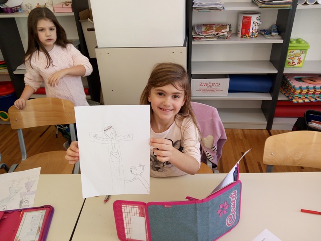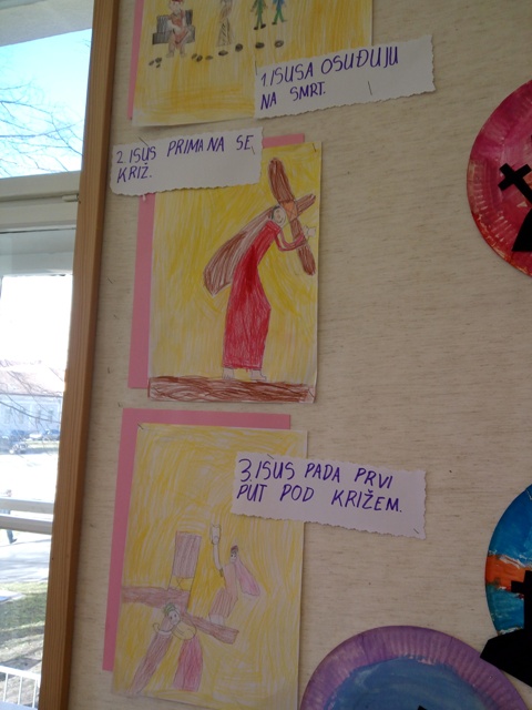 Učenici produženoga boravka prvoga razreda, s učiteljicom Barbarom Tus-Sedlar, ovih su se dana upoznali s pobožnosti križnoga puta. Vrlo zainteresirani, saznali su što je to, zašto se tako naziva, koje je njegovo značenje za nas i slično. Kako bi što bolje zapamtili sve postaje križnoga puta, odlučili su nacrtati svoj razredni križni put.