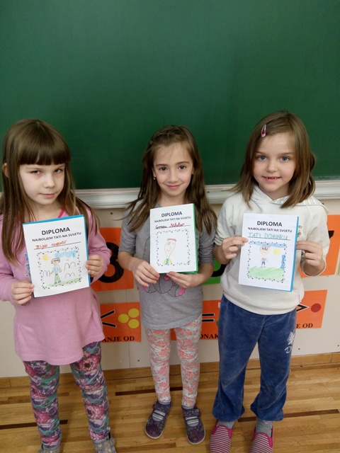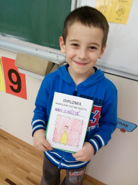 Nakon što su svoj razred ukrasili prigodnim radovima povodom skore svetkovine sv. Josipa te ujedno i Danom očeva, učenici produženoga boravka prvoga razreda, s učiteljicom Barbarom Tus-Sedlar odlučili su izradili diplome kojima će svojim tata pokazati zašto ih toliko vole te im uručiti priznanje kako su za njih oni najbolji očevi na svijetu.