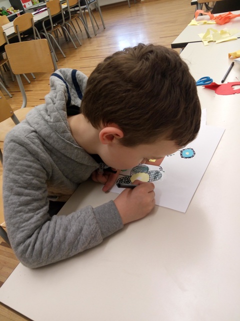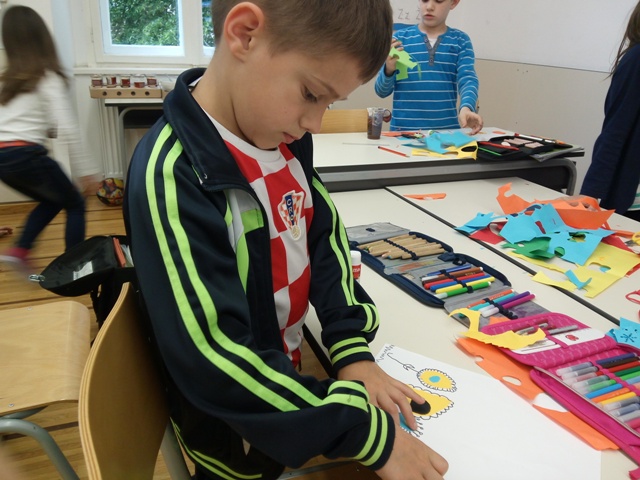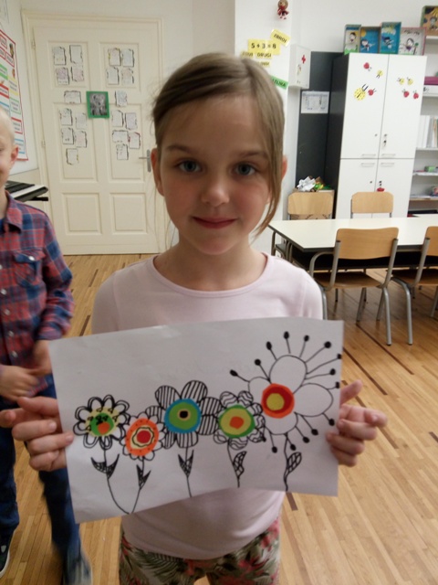 Ovih dana kiša nas ne napušta. Učenici produženoga boravka prvoga razreda, sa svojom učiteljicom Barbarom Tus-Sedlar, odučili su nacrtati livadu cvijeća koja se bori s kišom i ne dopušta joj da s cvijeta skine sve njegove vesele boje :). Uz crni flomaster i malo kolaž papira, nastale su neobični i lijepi cvjetovi.
