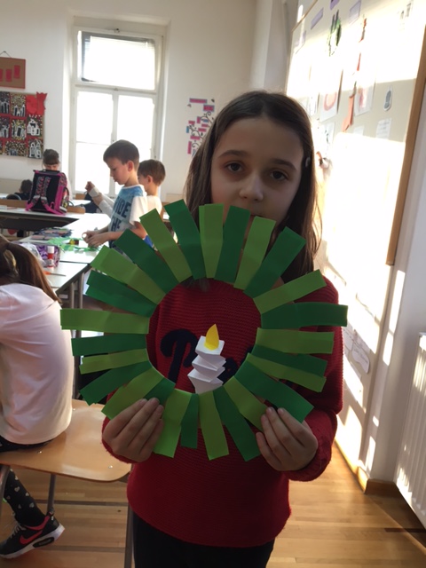 Učenici produženoga boravka drugoga i trećega razreda nastavljaju sa svojim adventskim uređenjem razreda. Sa svojom učiteljicom Barbarom Drežnjak jučer su uz pomoć kartona, kolaž papira i svojih vještih prstića izradili adventske vijence za vrata.