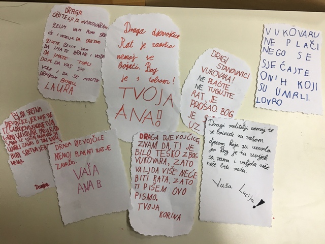 Kako bi to uistinu i bilo tako, učenici produženoga boravka drugoga i trećega razreda, sa svojom učiteljicom Barbarom Drežnjak, cijeli se tjedan upoznaju s događanjima Vukovara. Povezuju iz sa svojim likovnim radovima, pjesmama, čitanjima, igrama, stvaralačkim pisanjima... Vukovar 1991. Ima gradova od kojih ne osta niti znamen Ima gradova od kojih ostade samo ime urezano u kamen Ima gradova koji zrače svjetlošću zvijezda Ima gradova koji pružaju utočište i toplinu gnijezda Ima gradova koji su mržnji zatvorili vrata Ima gradova kojima je sloboda draža od zlata Ima gradova koji će se iz pepela ponovno roditi Ima gradova koje će ljubav i hrabrost osloboditi Ima jedan grad koji je hrabrošću nadmašio sebe i sve naše snove Zbog njega se sloboda Vukovar zove Tin Kolumbić
