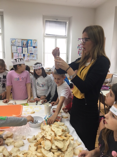 Prigodom obilježavanja Dana kruha, učenici produženoga boravka drugoga i trećega razreda sa svojom učiteljicom Barbarom Drežnjak, odlučili su sami napraviti svoju užinu. Prije samoga rada, prvo su pripremili svoje glave, napravili su kuharske kape od papira, dezinficirali svoje ruke i učionicu, a zatim se bacili na teoriju. Upoznali s pojmom kanapea i tzv. francuskoga kruha. Zatim su krenu s radom, nasjeckali su salamu, sir, krastavce, masline te kruh, pripremili namaz te paštetu, a potom krenuli u izradu kanapea. Budući da su kao pravi kuhari napravili da ima i više nego dovoljno, kanapeom su osim sebe, nahranili i djelatnike škole koji su još bili tamo te roditelje kada su gladni dolazili po njih.